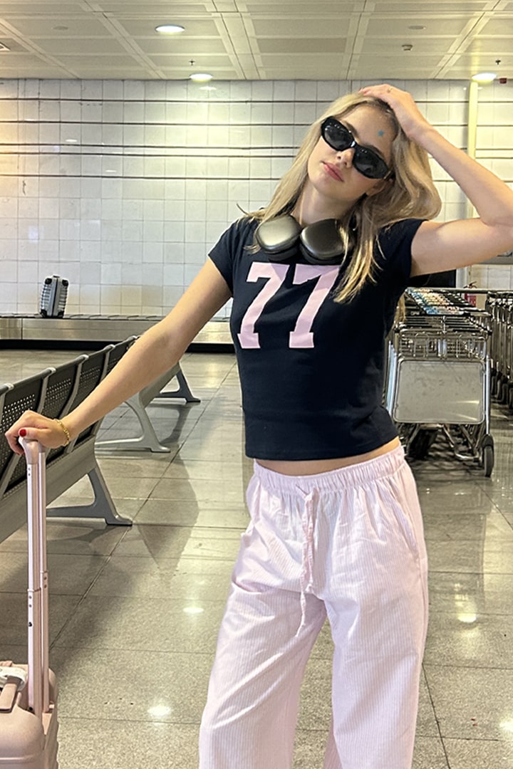 T-shirt with 77 print, crew neckline, short sleeves, regular length, relaxed fit.