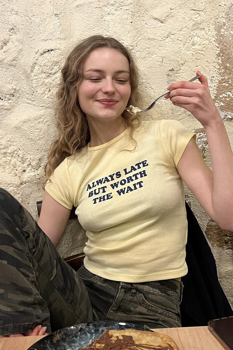 T-shirt with Always late print, crew neckline, short sleeves, regular legth, relaxed fit.