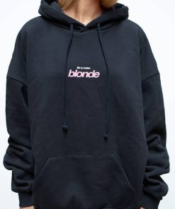 Hoodie with Blonde print, front pockets, long sleeves, long length, relaxed fit