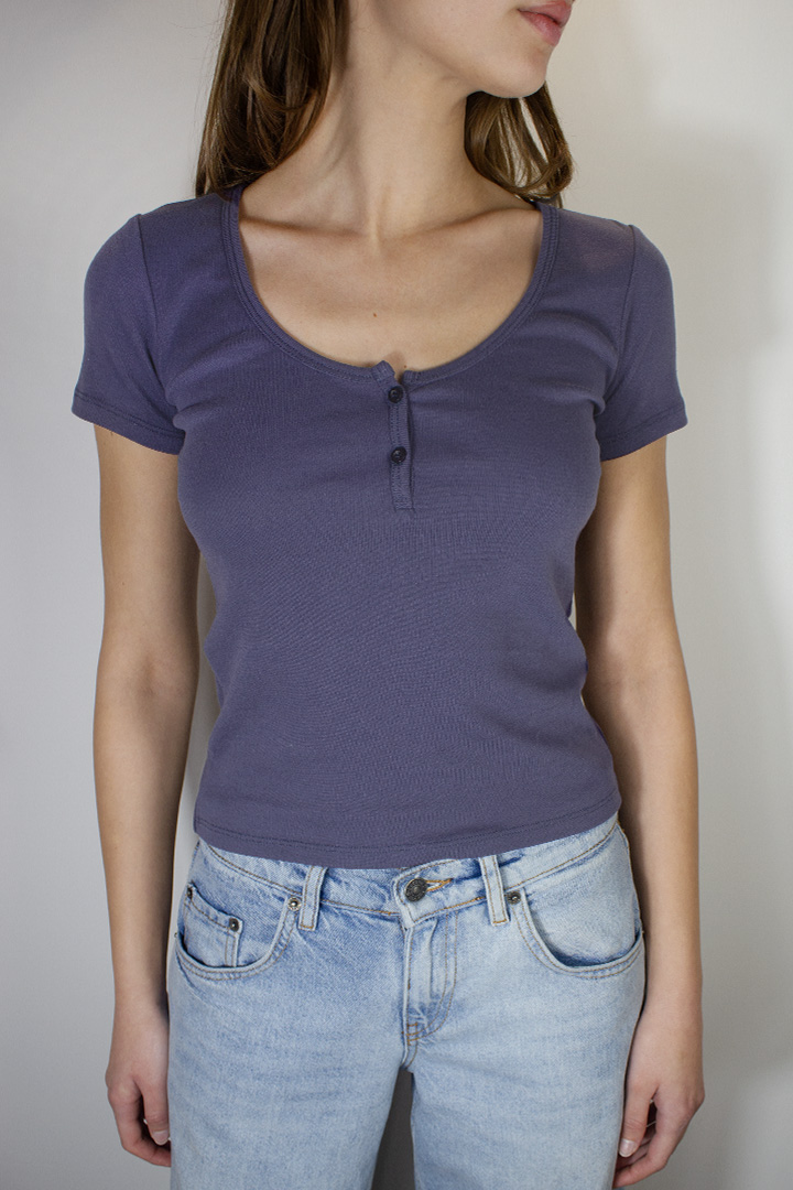 Buttons chester T-shirt, scoop neck, short sleeves, regular length, slim fit.