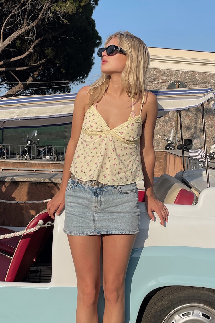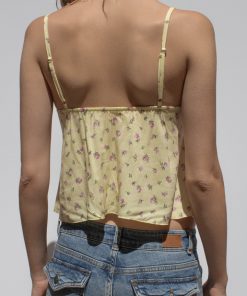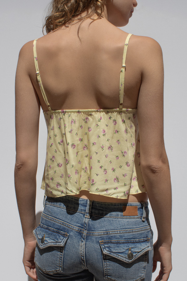 V-neck top, lace fabric, flowers pattern, with adjustable straps, sleeveless, regular length, slim fit.