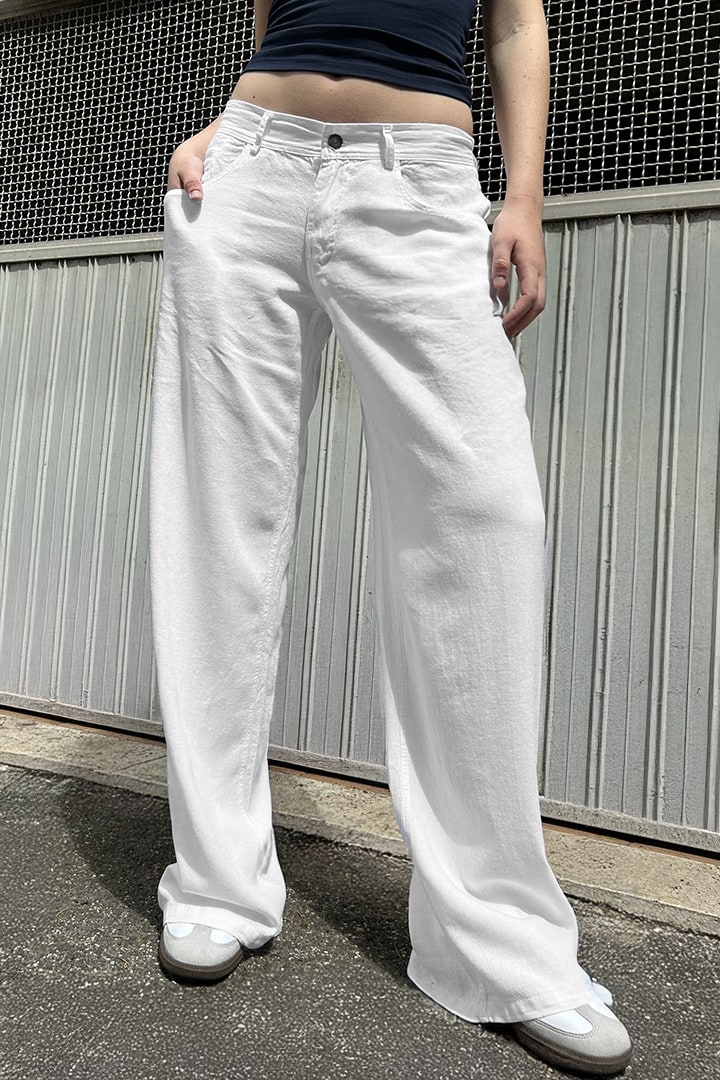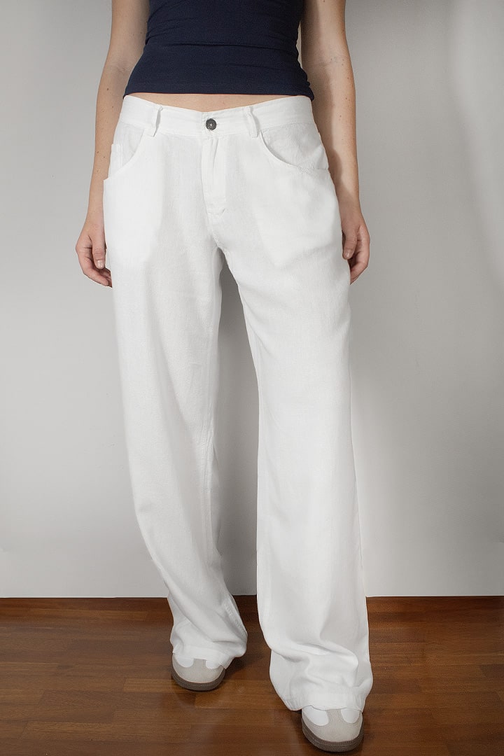 Low waist pants, belt loops, back pockets, button and zipper closure, regular length, slim fit.