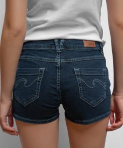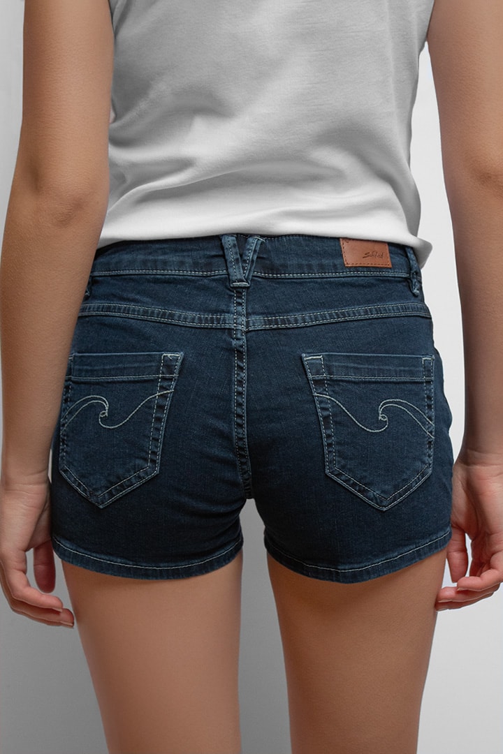Low waist shorts, 4 pockets, belt loops, back pockets with embroidery, button up and zip fastening, regular length, slim fit.