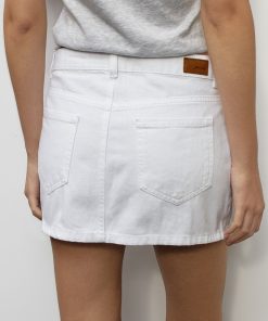 Low waist skirt, button up and zip fastening, belt loops, with pockets, short length, slim fit.