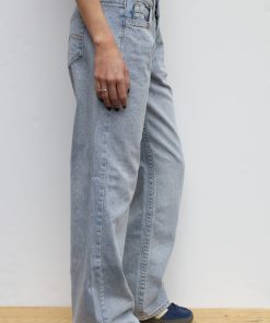 Wide leg jeans, low waist, button up and zip fastening, back pockets with embroidery, 4 pockets, belt loops, relaxed fit.