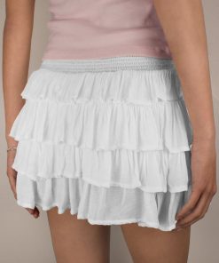 Skort, with ruffle, shirred waist, short length, relaxed fit.