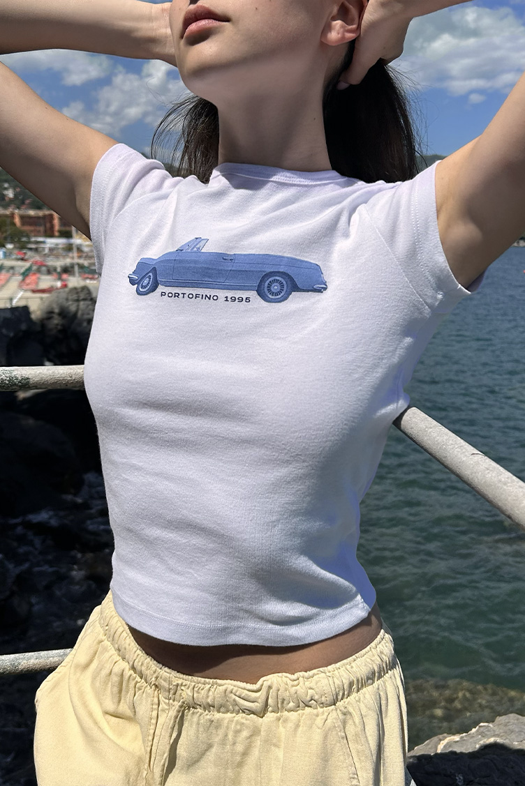 T-shirt with Portofino print, crew neckline, short sleeves, regular length, relaxed fit.