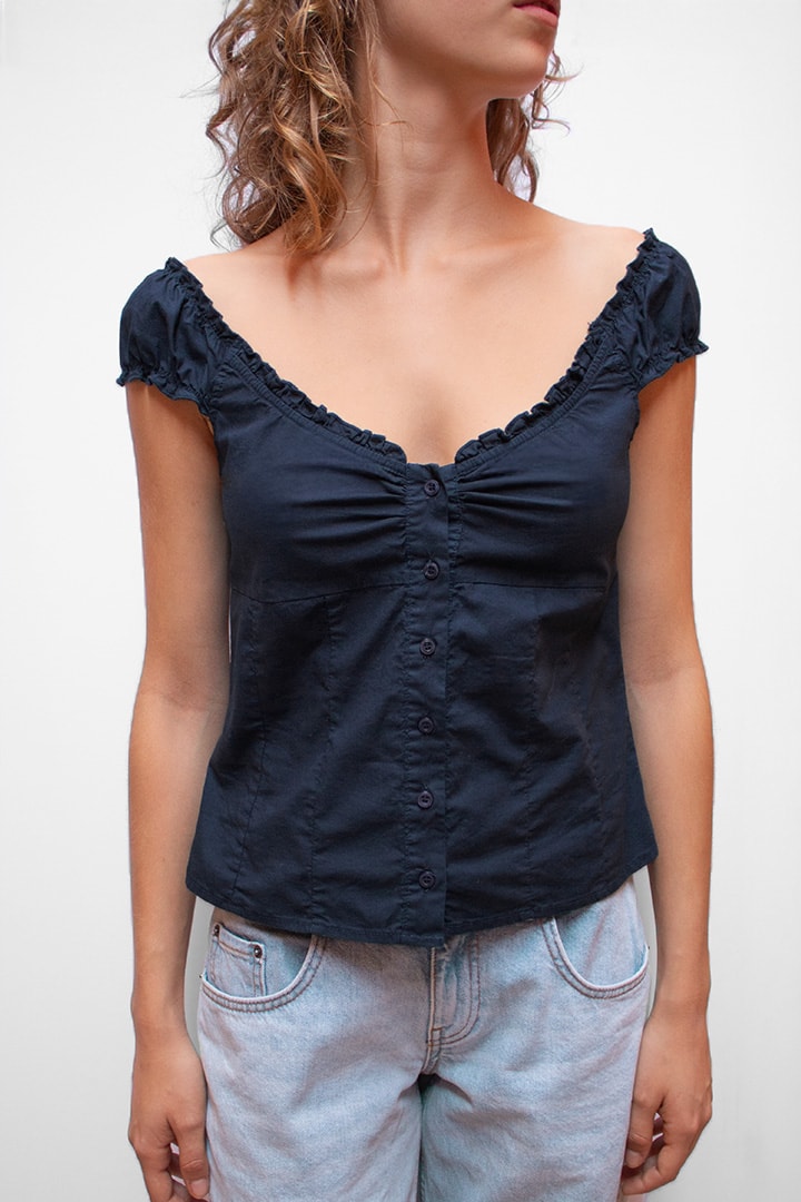 Shirt with button, button fastening, stretch short sleeves, regular length, slim fit.