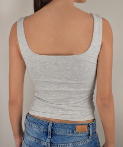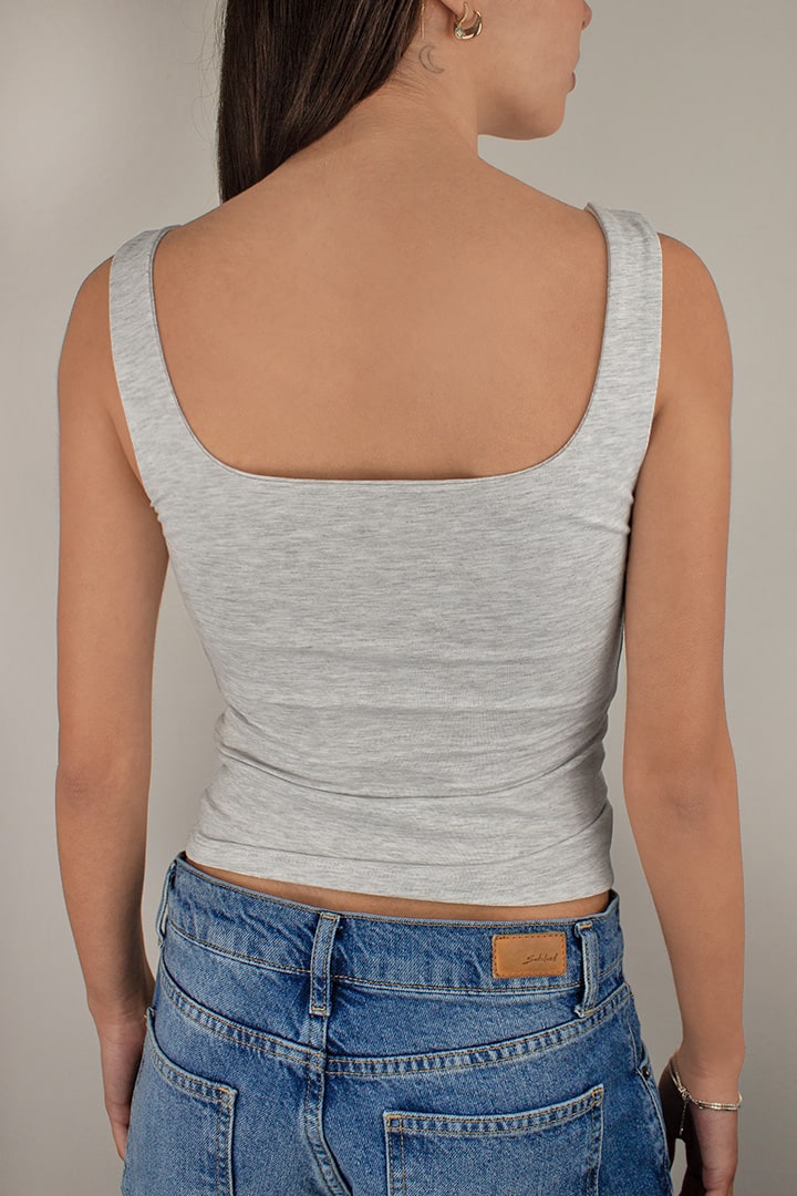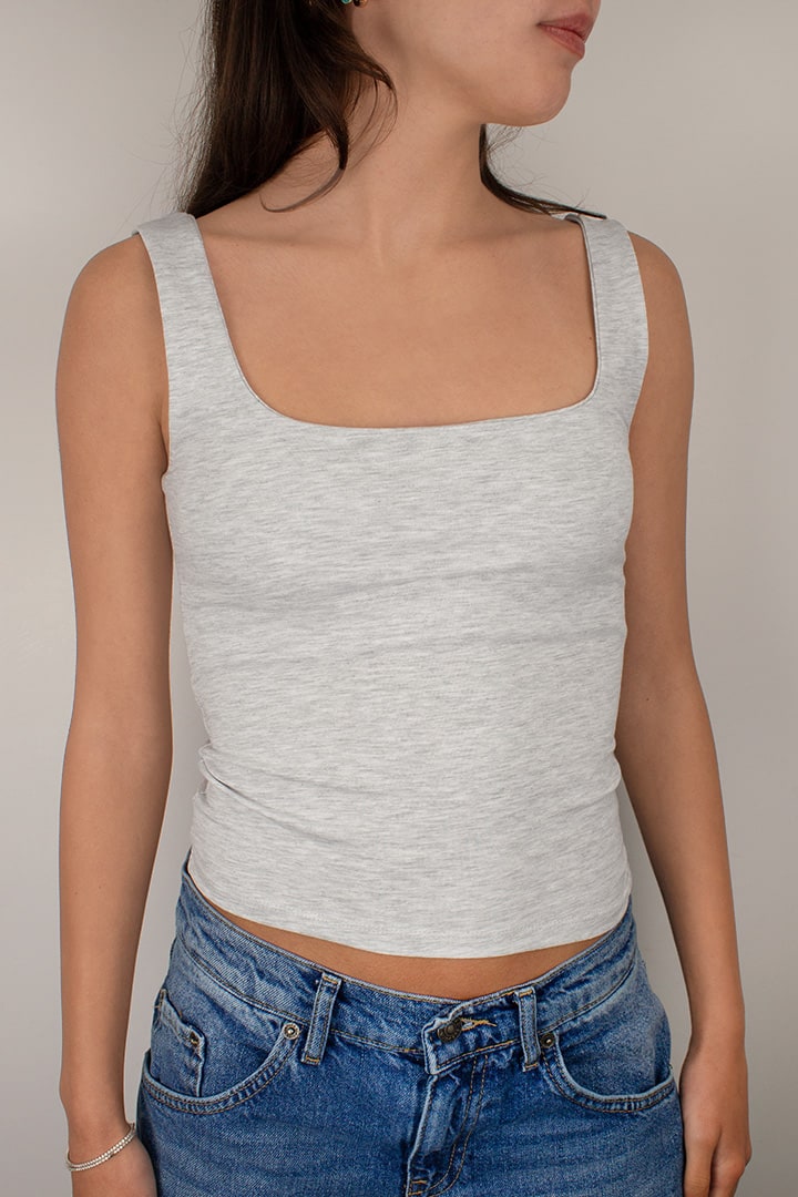 Square neck top, sleeveless, regular length, slim fit.