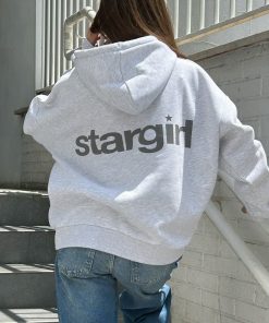Hoodie with Stargirl print, front pockets, long sleeves, long length, relaxed fit.