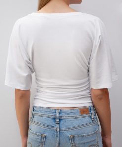 Crew neckline t-shirt, with side ruffle, short sleeves larghe, regular length, slim fit.