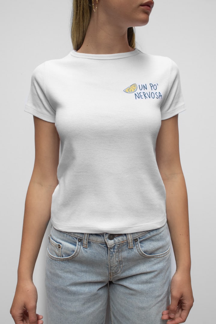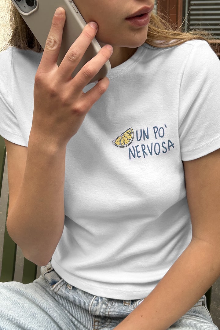 T-shirt with Un po’ nervosa print, crew neckline, short sleeves, regular length, relaxed fit.