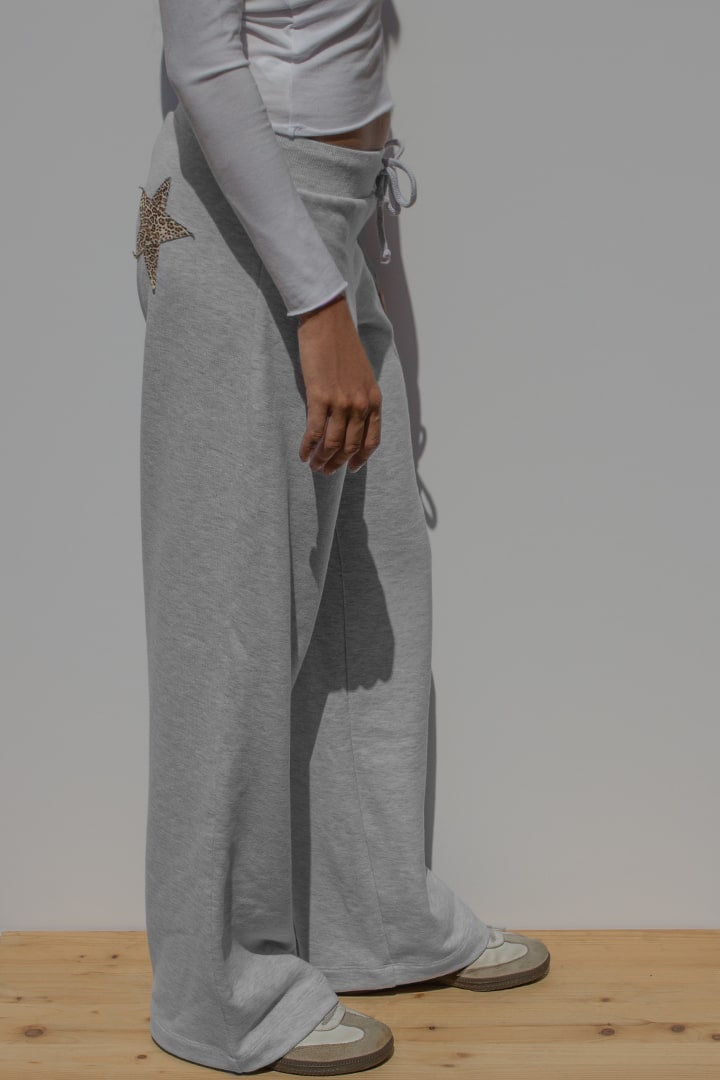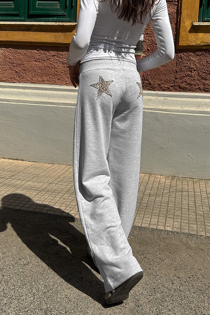 Joggers, with leopard star patch, wide-leg design, elastic waistband, regular length, relaxed fit.